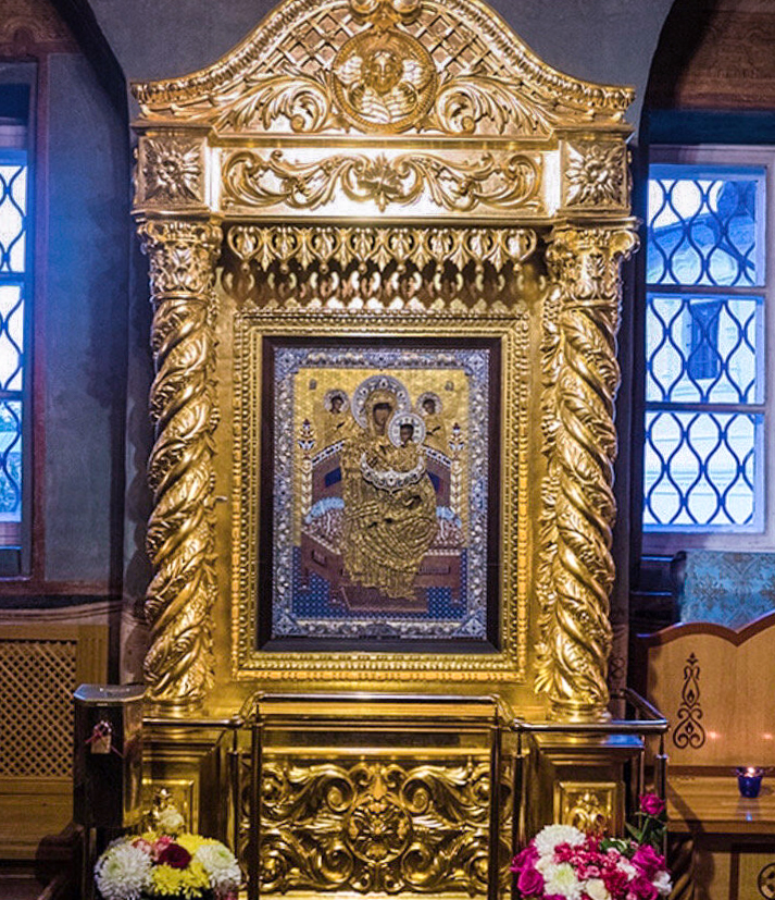 Богомати, Всецарице! Услыши многоболезненное воздыхание наше пред чудотворною иконою Твоею, из Афонского удела в Россию пренесенною, призри на чад Твоих, неисцельными недуги страждущих, ко святому образу Твоему с верою припадающих! Якоже птица крилома покрывает птенцы своя, тако и Ты ныне, присно жива сущи, покрый нас многоцелебным Твоим омофором. Тамо, идеже надежда исчезает, несумненною Надеждою буди. Тамо, идеже лютыя скорби превозмогают, Терпением и Ослабою явися. Тамо, идеже мрак отчаяния в души вселися, да возсияет неизреченный свет Божества! Малодушныя утеши, немощныя укрепи, ожесточенным сердцам умягчение и просвещение даруй. Исцели болящия люди Твоя, о всемилостивая Царице! Ум и руки врачующих нас благослови; да послужат орудием Всемощнаго Врача Христа Спаса нашего. Яко живей Ти, сущей с нами, молимся пред иконою Твоею, о Владычице! Простри руце Твои, исполненныя исцеления и врачбы, Радосте скорбящих, в печалех Утешение, да чудотворною помощь скоро получив, прославляем Живоначальную и Нераздельную Троицу, Отца и Сына и Святаго Духа, во веки веков. Аминь